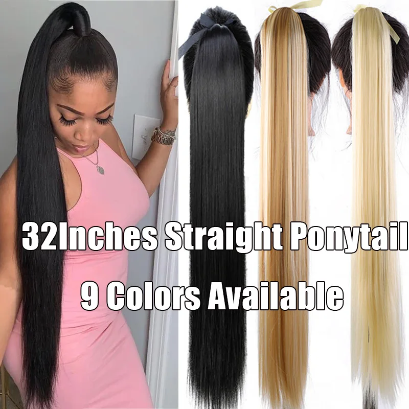 Name: JINKAILI-Peluca de cabello sintético superlarga y Lisa, extensiones de cabello con coleta ondulada resistente al calor