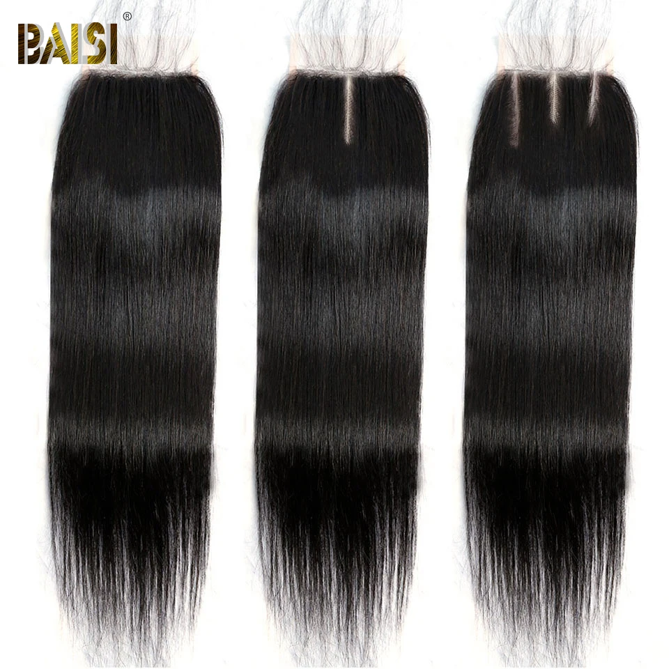 Name: BAISI-extensiones de pelo brasileñas con encaje, accesorio capilar liso de 4x4 HD con cierre de encaje suizo, con cierre superior transparente