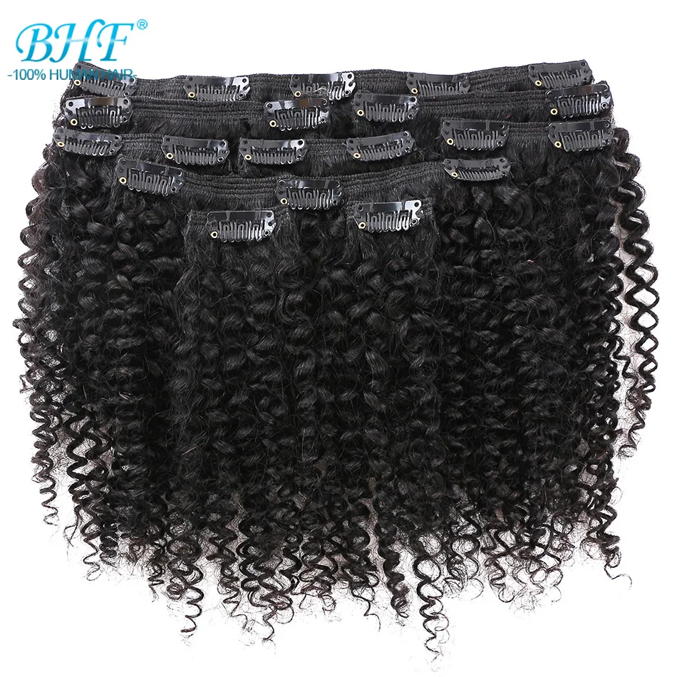 Name: BHF Afro rizado Clip en extensiones de cabello humano Color Natural cabeza completa 9 unids/set 100g rizado tejer cabello mongol Remy