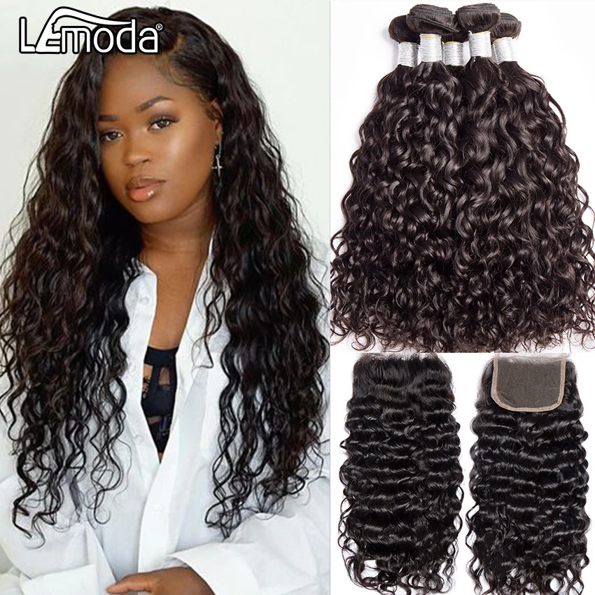 Name: Pelo de la onda de agua mechones con cierre brasileño mechones de cabello humano postizo 3 4 mechones con cierre Frontal Remy extensiones de cabello