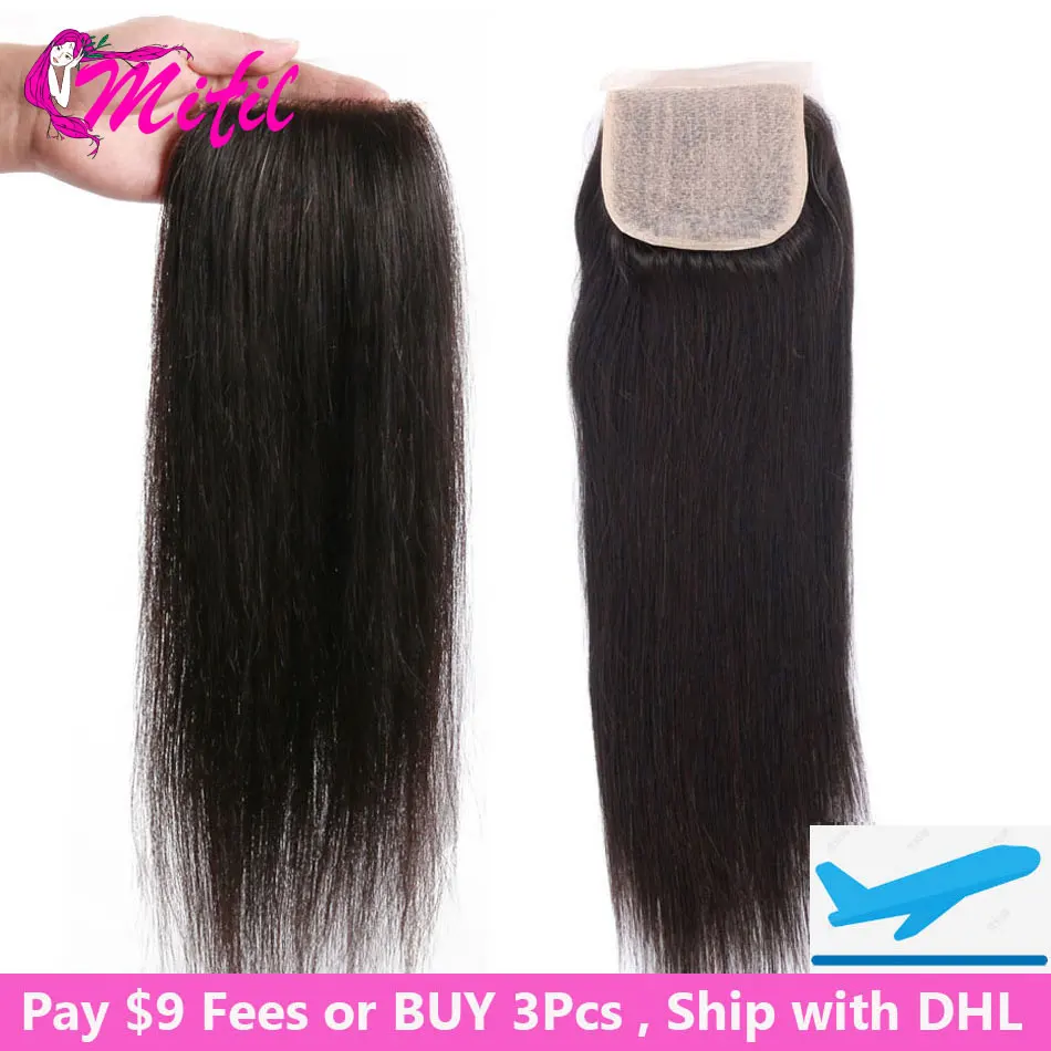 Name: Mifil-Cierre de encaje liso brasileño, solo 4x4, cierre sin división, 100%, cabello humano Remy, Base de seda sintética, liso, 10-22 pulgadas